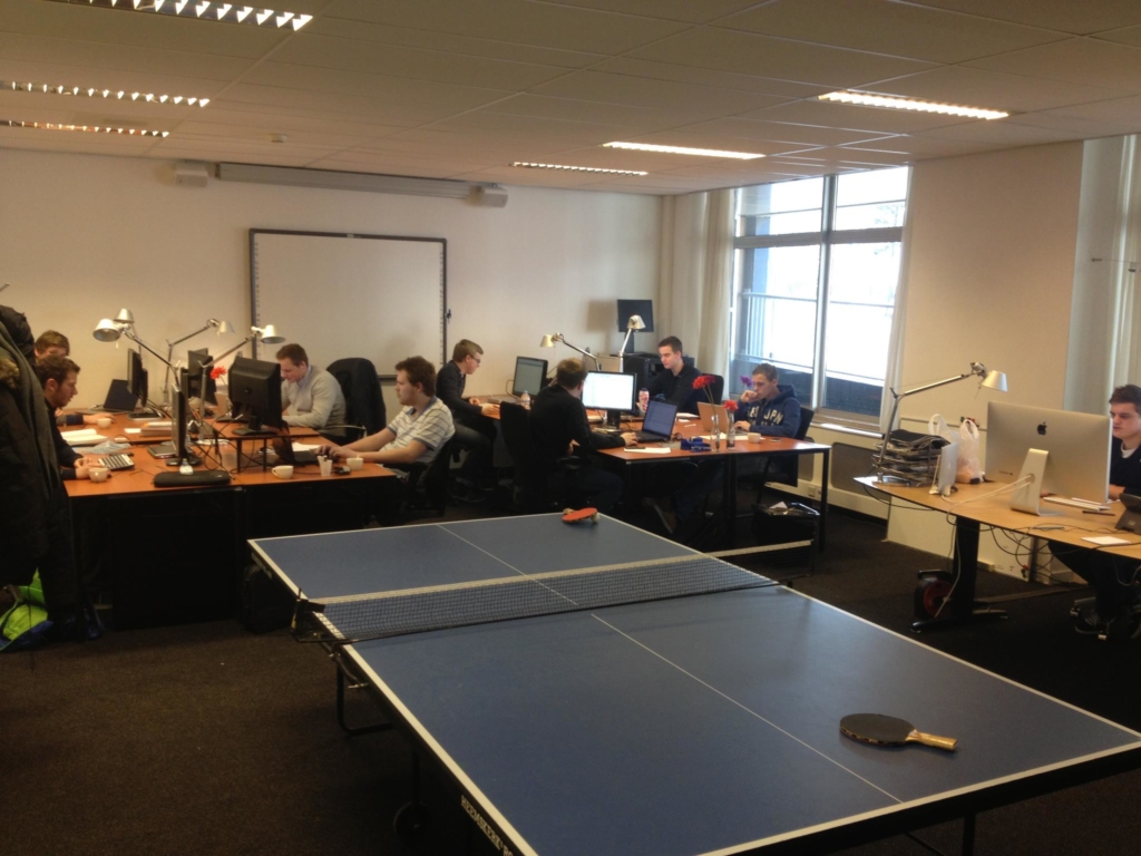 In 2012 kwam er iemand met het idee om een app te ontwikkelen voor de Rijksuniversiteit Groningen. Om serieus over te komen, richtten we samen snel een bv op met de naam Appademic. We huurden een kantoorruimte in het toenmalige Hampshire Hotel in Groningen. Er was hier ruimte voor ongeveer 12 medewerkers. De vergaderruimte deed ook dienst als kantine, zodat klanten altijd konden ruiken wat er tijdens de lunch was gegeten.
