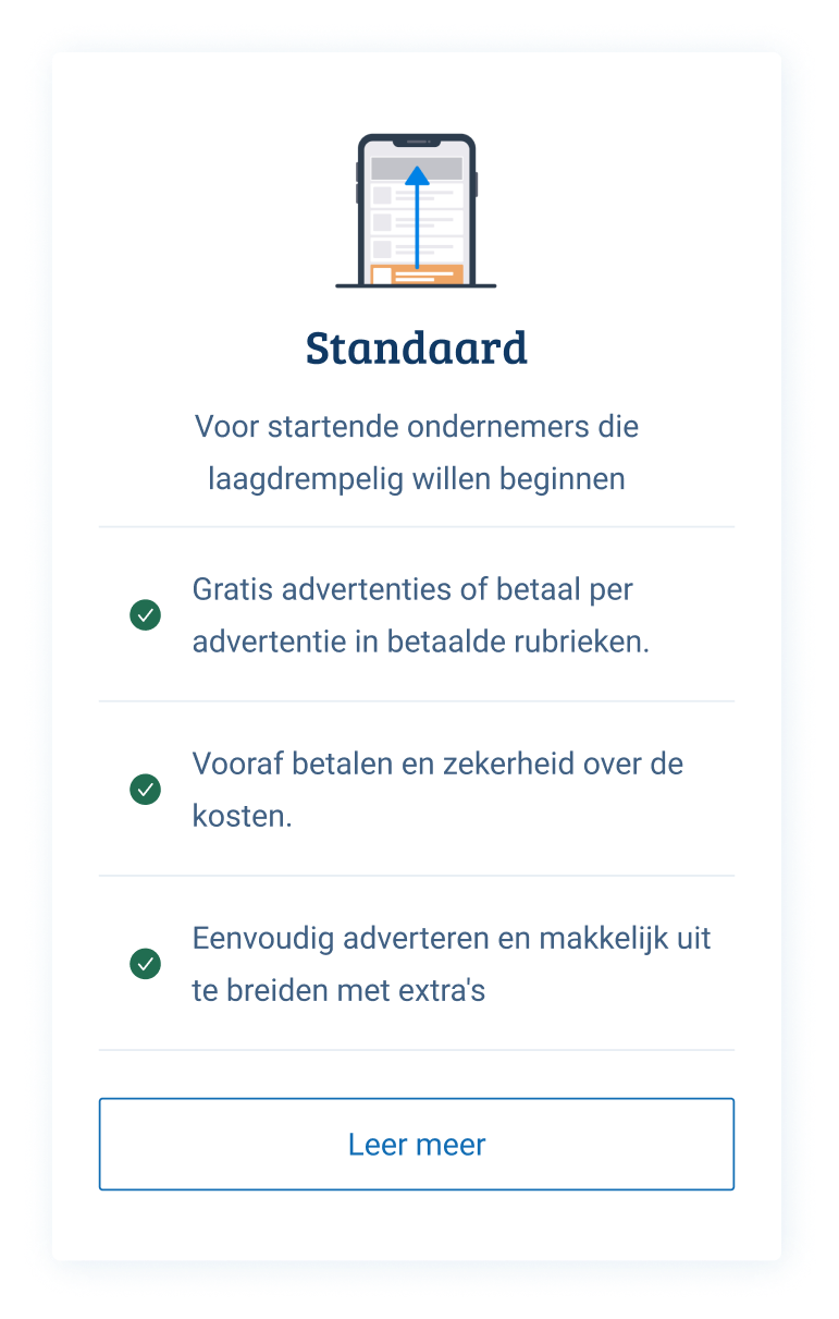Toen Marktplaats Zakelijk bij ons kwam, was duidelijk dat de huidige website aan vervanging toe was; deze was gedateerd en toe aan een upgrade, zowel qua design als qua opzet. De zakelijke markt vraagt om specifieke oplossingen die verder gaan dan wat de reguliere consument nodig heeft. Doordat het aanbod dat Marktplaats aan bedrijven biedt heel divers is, is het een uitdaging om dit op een begrijpelijke en logische manier te communiceren. Tijdens het hele designproces is daarom de user journey het uitgangspunt geweest.