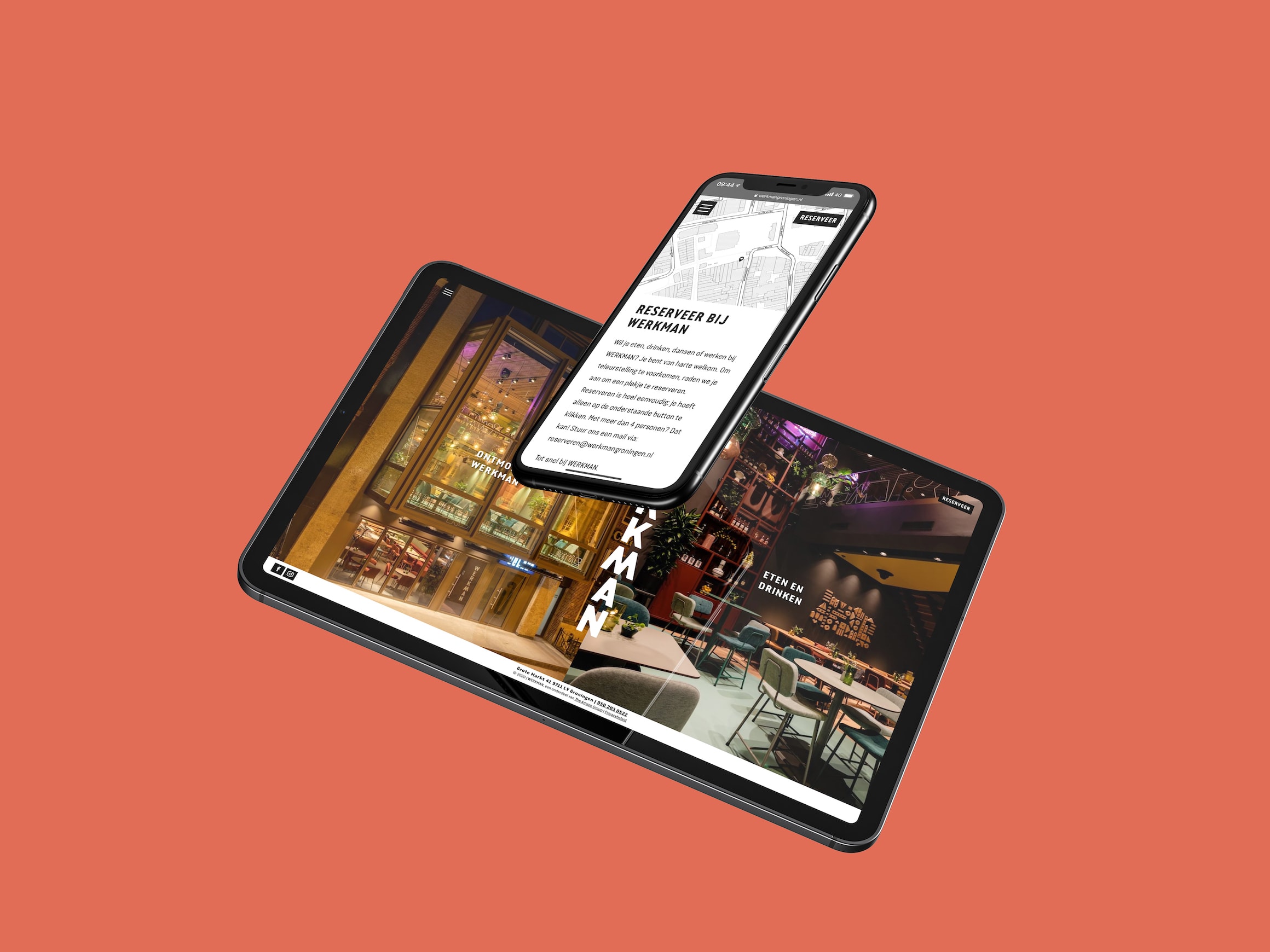 Vanaf de Grote Markt trekt WERKMAN meteen je aandacht. Bij WERKMAN kan je eten, drinken, dansen en werken in één gebouw. WERKMAN is geïnspireerd op kunstenaar Hendrik Nicolaas Werkman.Dit zie je terug in alles, de gerechten zijn als kunstwerken en het interieur een schilderij. Lunchen en dineren doe je door het gehele gebouw.